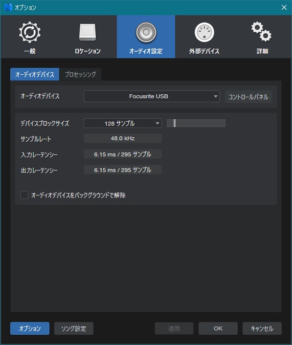 もしサンプルレートがすごく高くなっていて、なおかつレイテンシーや処理落ちに悩んでいる場合は、ここから設定値を変更できます。